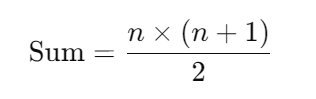 The formula for the sum of the first n natural numbers is expressed as: This formula can be utilized to determine the anticipated sum of